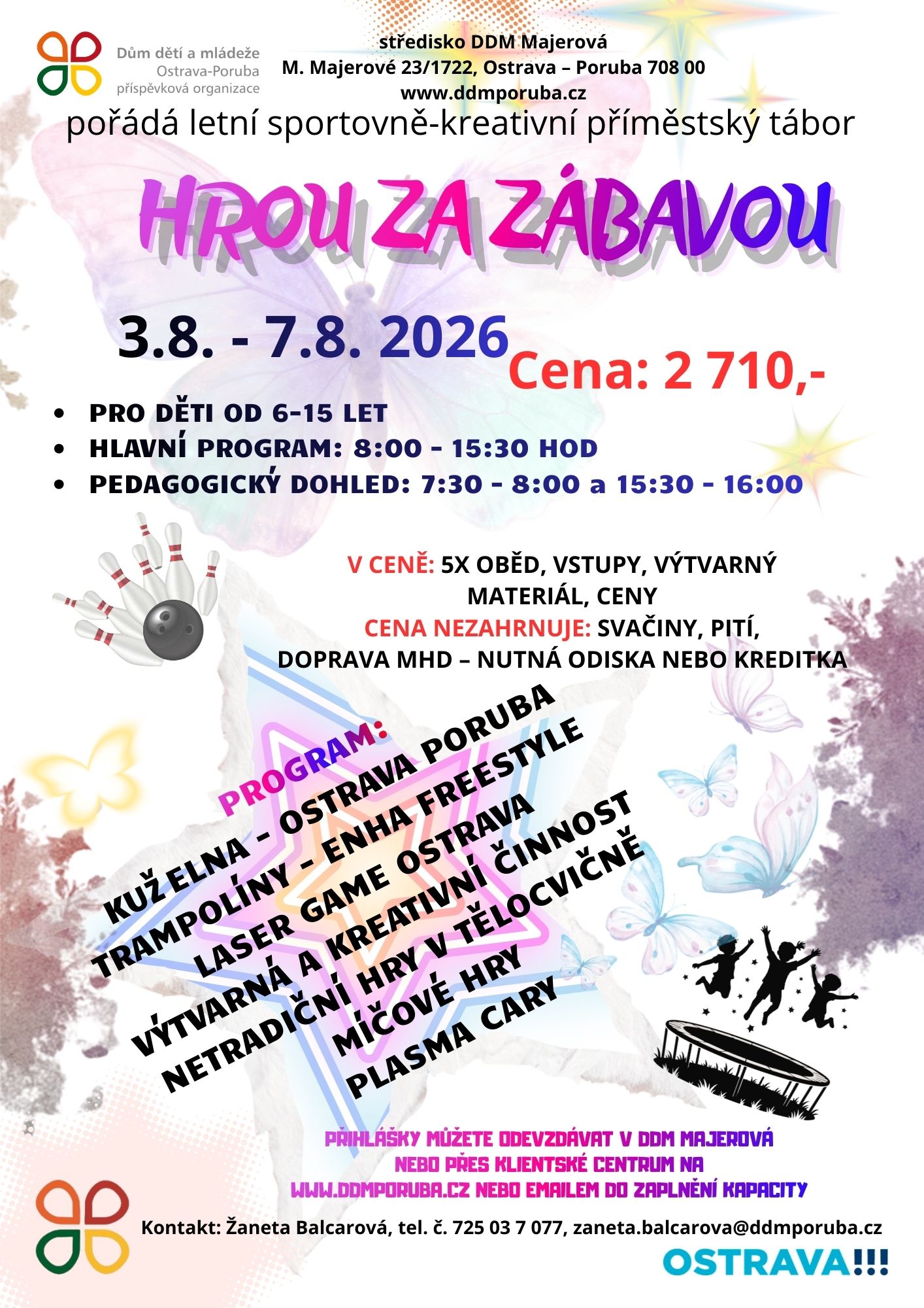 - informace na email: zaneta.balcarova@ddmporuba.cz , 725 037 077