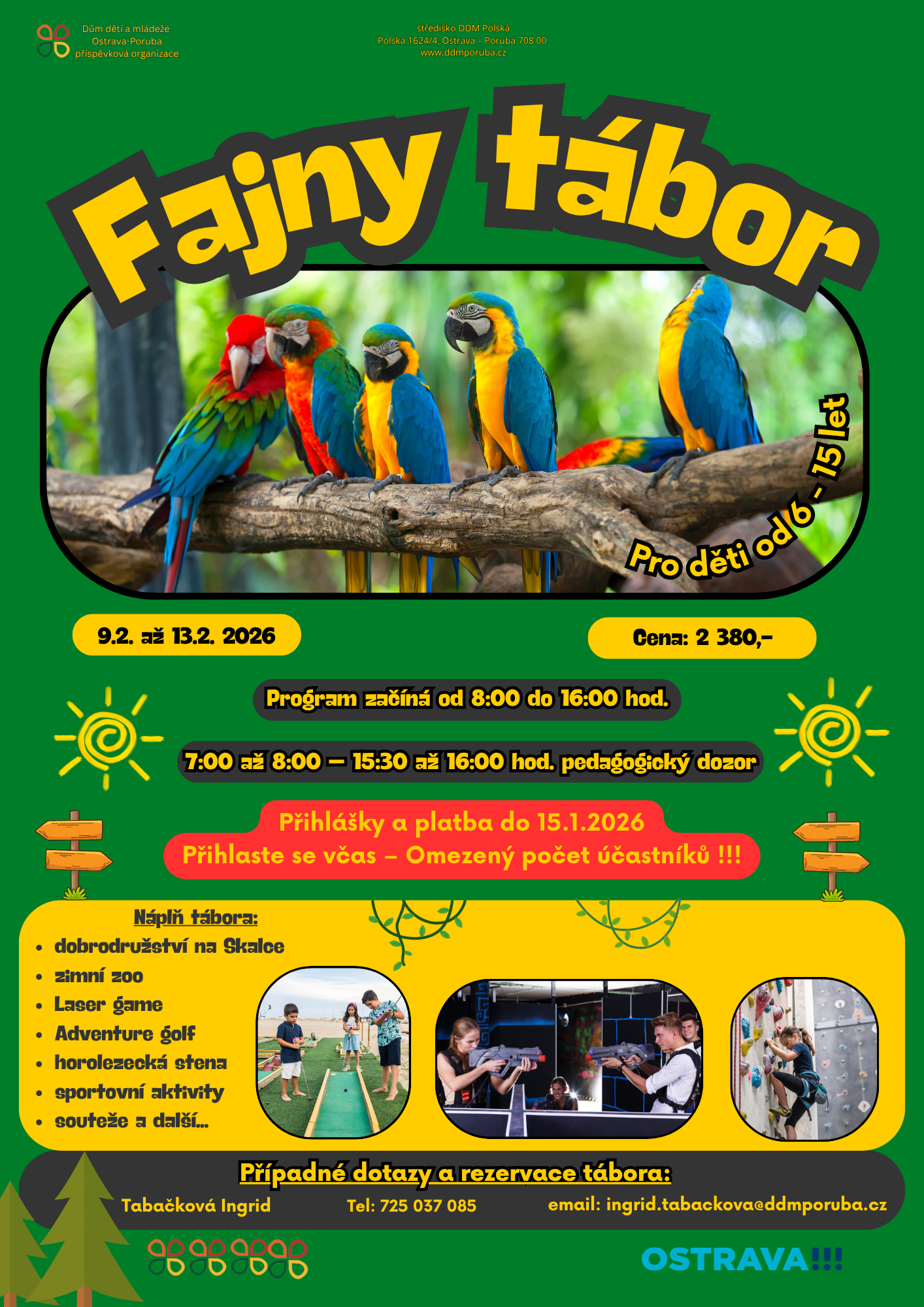 - přihlášky na email: ingrid.tabackova@ddmporuba.cz nebo mobil 725 037 085