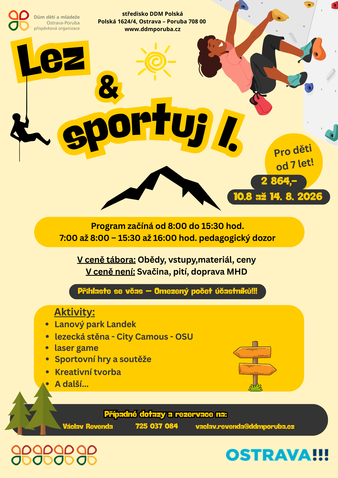 Na příměstské tábory lze žádat příspěvky pojišťoven, vouchrů z Darujte dětem kroužky nebo correnců z Ostrava - Jih. Informace ZDE.